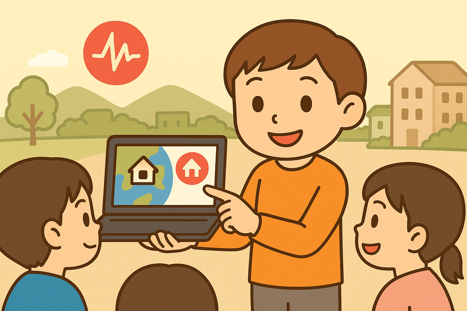 避難所マップや地震速報をまとめたサイトを自分で作って、地域の人に紹介したそうだよ。