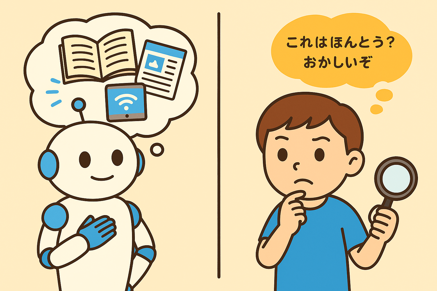 AIはデータから学ぶけれど、「本当に正しいこと」や「人の気持ち」は、まだまだ苦手なんだよ。