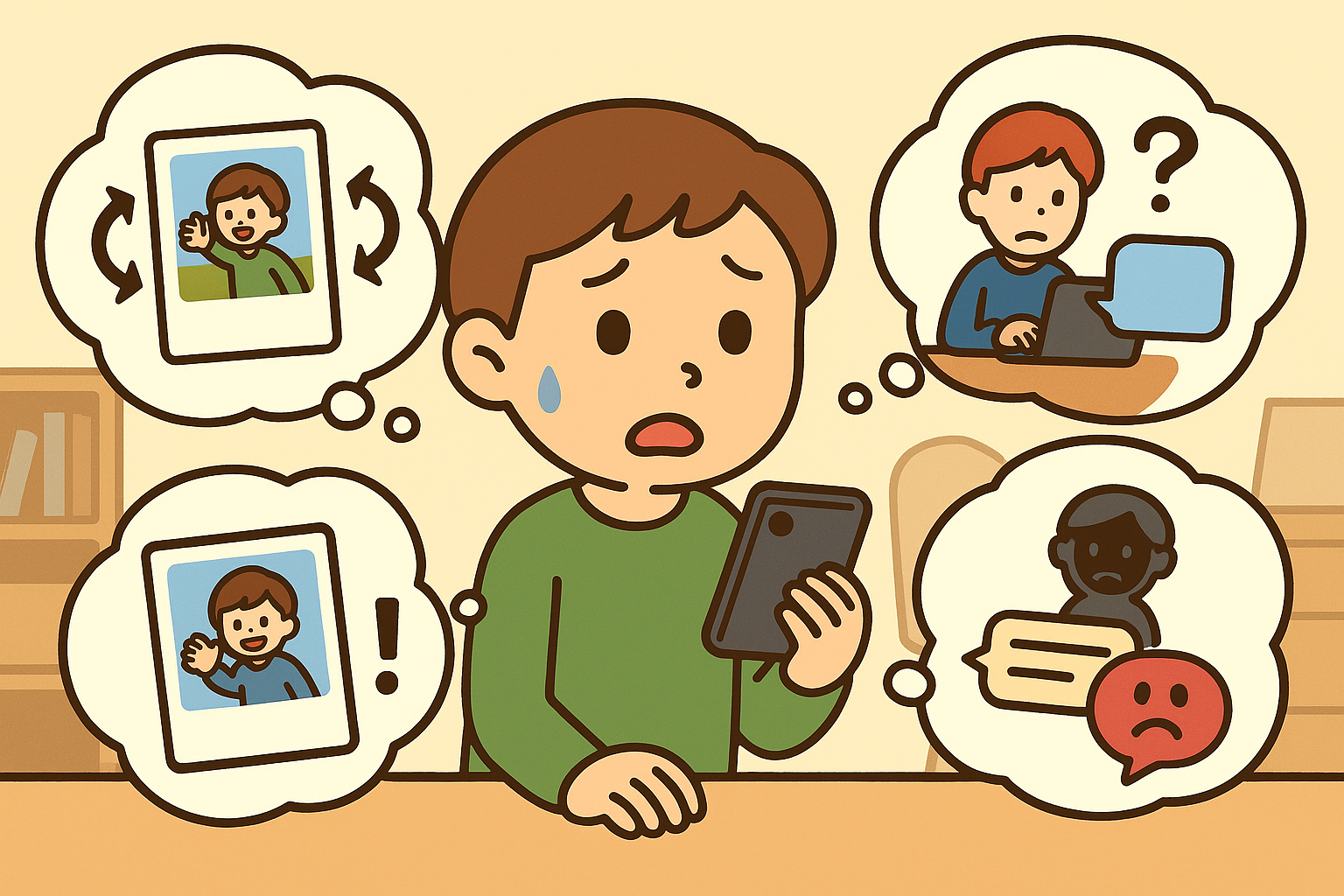 たとえば、スマホの「おやすみ時間」を決めてみたり、SNSに投稿する前に「これ見られて大丈夫かな?」とつぶやいてみたりするのもいいね。ときには、「ちょっと休憩」タイムをつくるのもおすすめだよ。