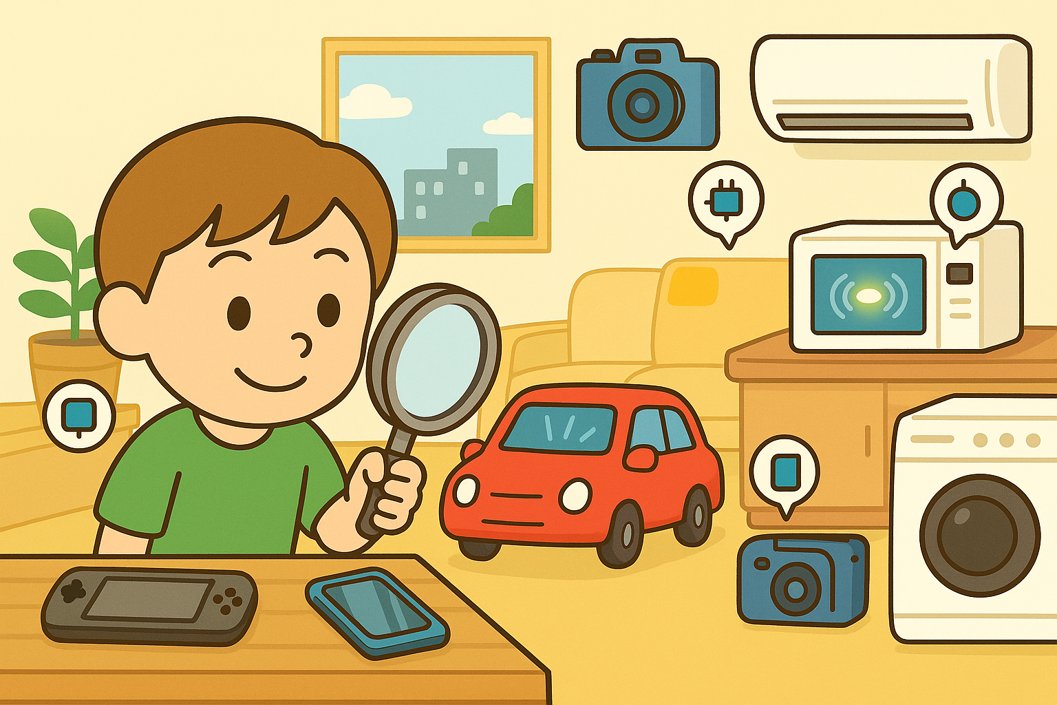 | スマホやゲーム機、家電など、身の回りのいろんなものにも小さなコンピューターが入っている |